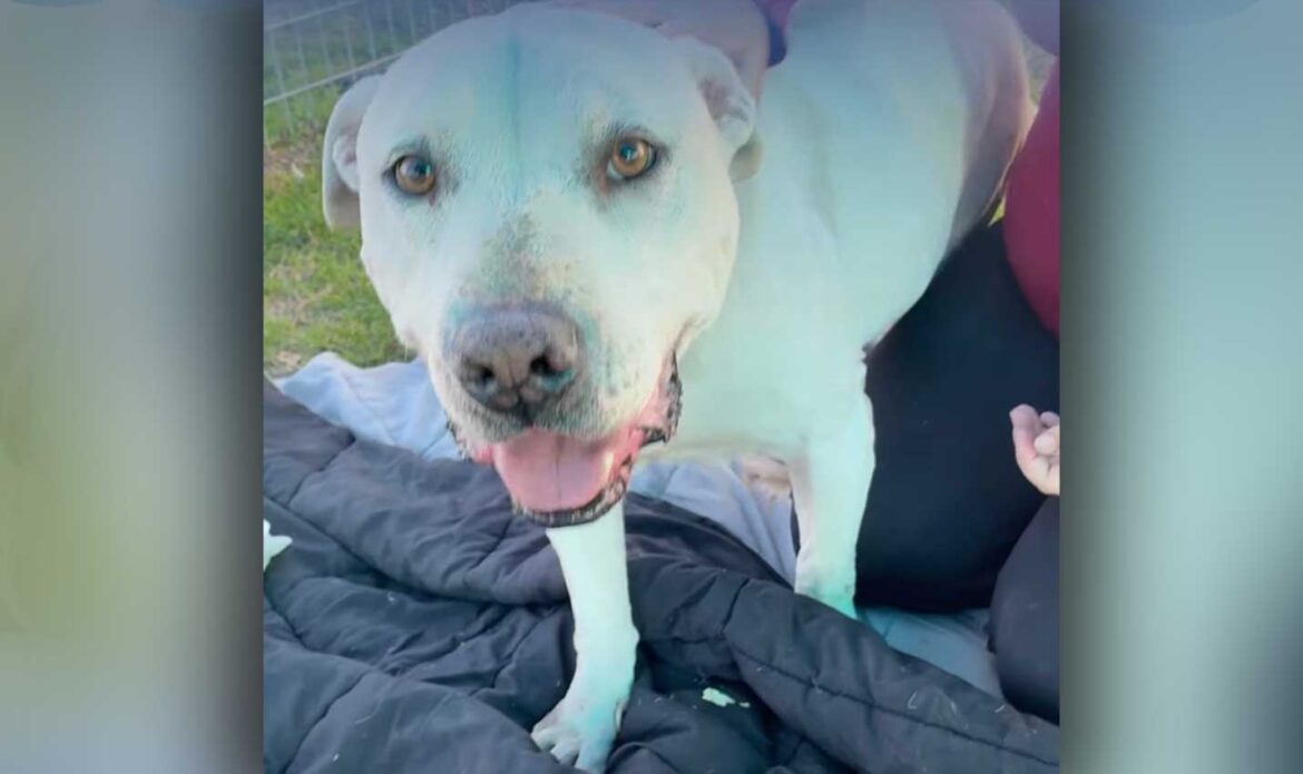 Leche is a friendly eight-year-old male pit bull mix who loves meeting new people. He has lived a full life and is eager to share his golden years with a loving family.