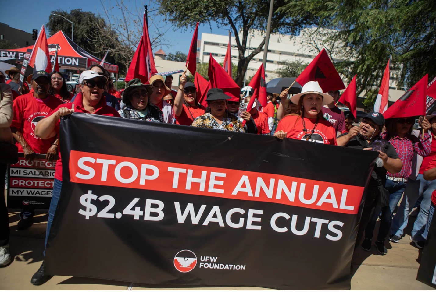 The union representing farmworkers argued in court filings that employers, especially those in agribusinesses, will expand the pay cut to every farmworker, including American workers.